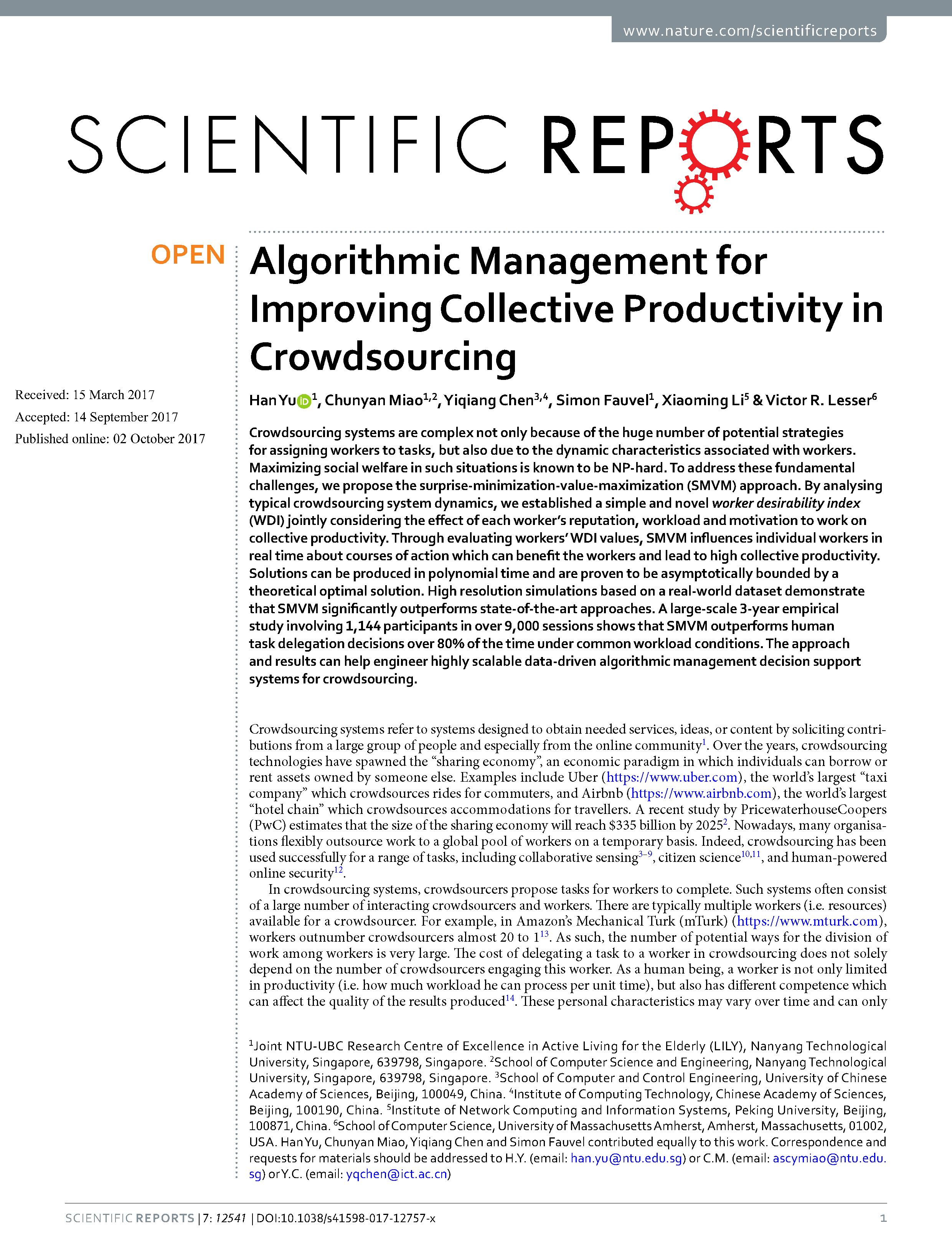Han Yu, Chunyan Miao, Yiqiang Chen, Simon Fauvel, Xiaoming Li & Victor R. Lesser